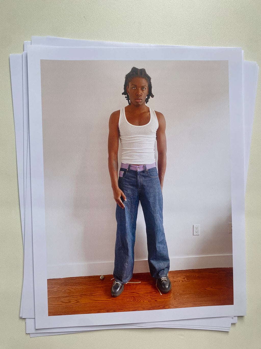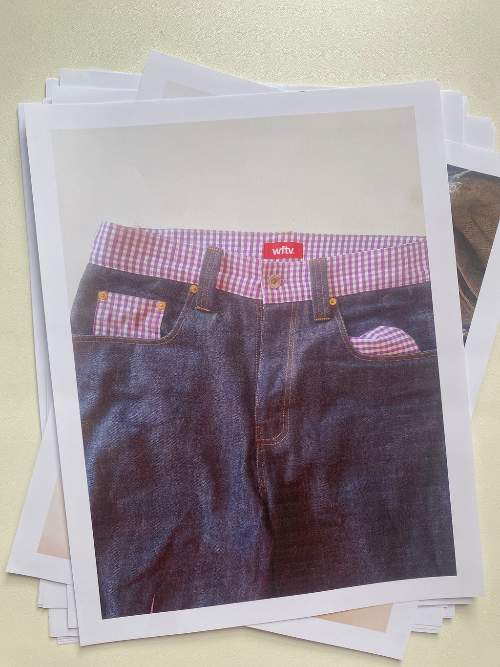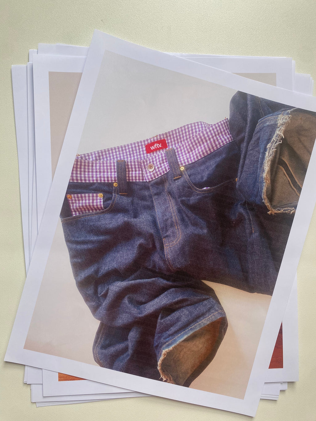 Constructed from 13oz indigo selvedge, these pants are made in Los Angeles, California by Emmanuel Juarez. A purple gingham waistband and meticulous back pocket stitching lend distinguished character, while the robust fabric and timeless cut balance durability with understated sophistication.