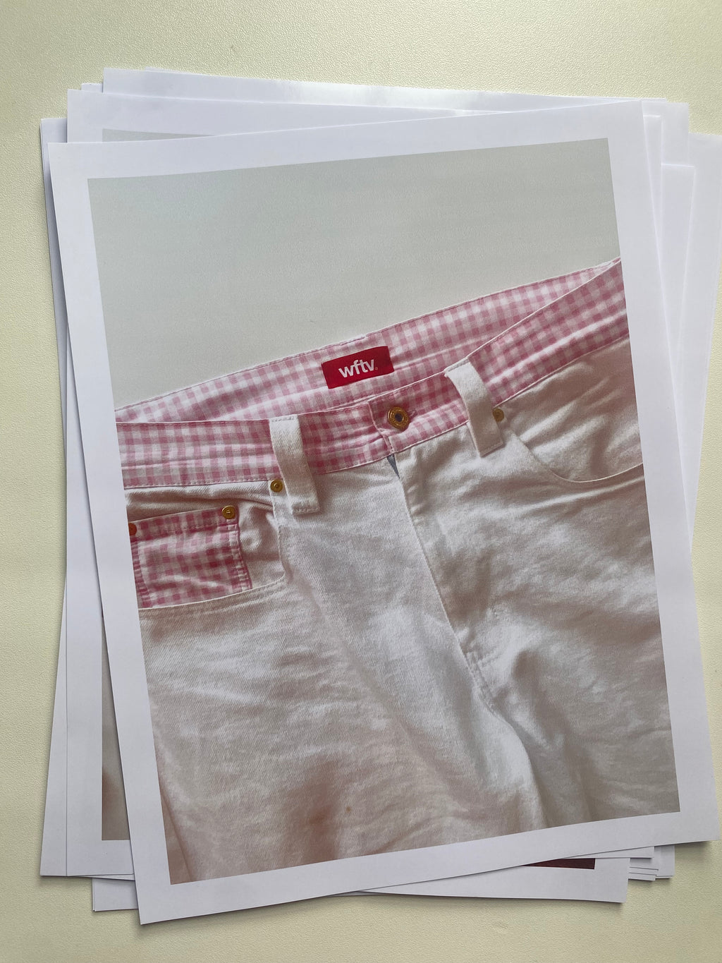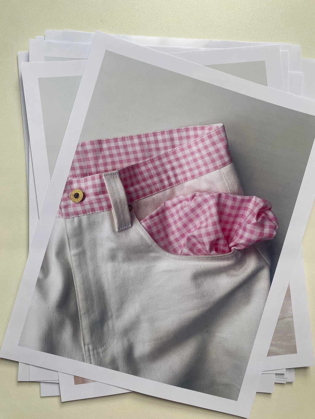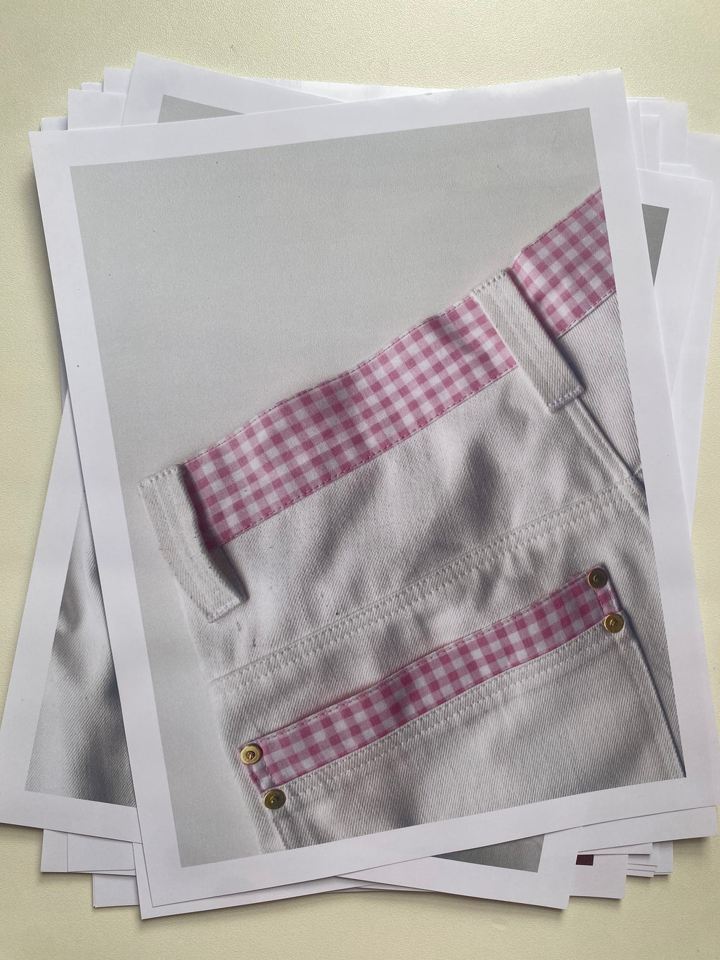 Cut from lightweight 10oz selvedge cotton, these pants are made in Los Angeles, California by Emmanuel Juarez. A pink gingham waistband, inner pockets, and coin pocket detailing add subtle contrast, while the breathable fabric and classic silhouette highlight everyday elegance and refined craftsmanship.