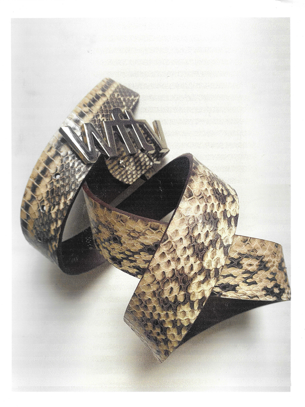 Crafted from genuine snakeskin and supple leather, this belt offers an impeccable fit for most sizes. Featuring a WFTV logo buckle and a sleek hinge and hook closure with zinc alloy hardware, it seamlessly merges sophistication with function, offering a visual statement of refined elegance.